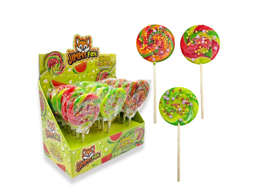 JIMMY FOX SPIRAL LOLLIPOPS WATERMELON WITH SPRINKLES 50g